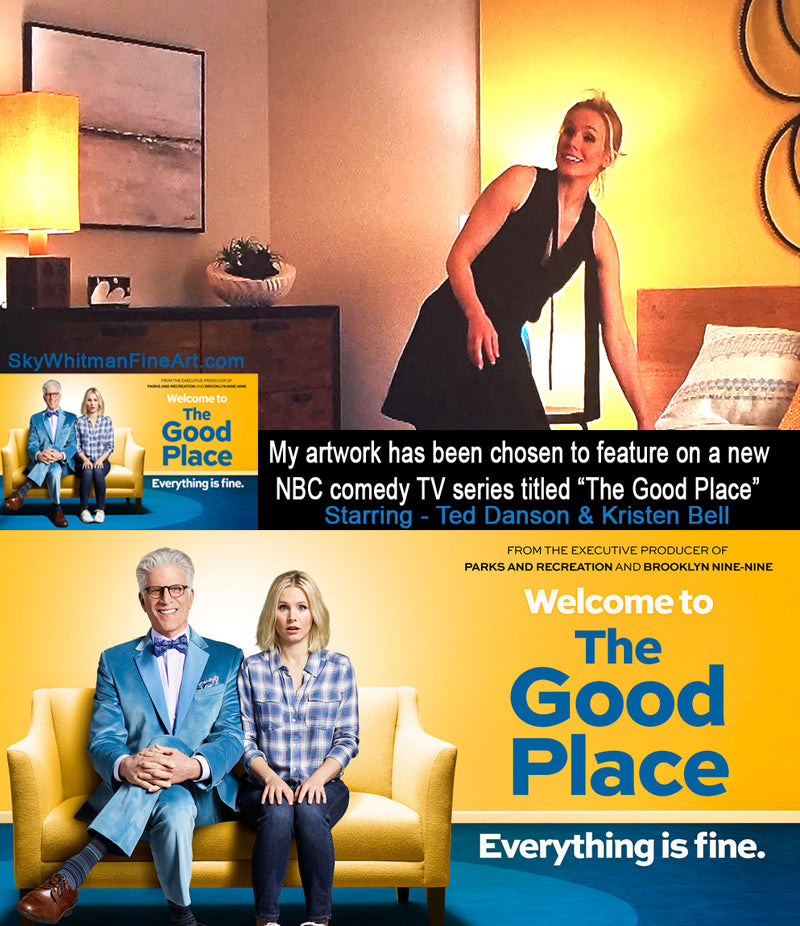 ❀ I am very excited to announce that my artwork has been picked up by the amazing set designer Dianna of Universal Studios to be part of the set design for the new NBC Comedy TV series called "The Good Place" Starring Ted Danson & Kristen Bell. ♥ A special thanks to Dianna :) Airing 9/19/2016